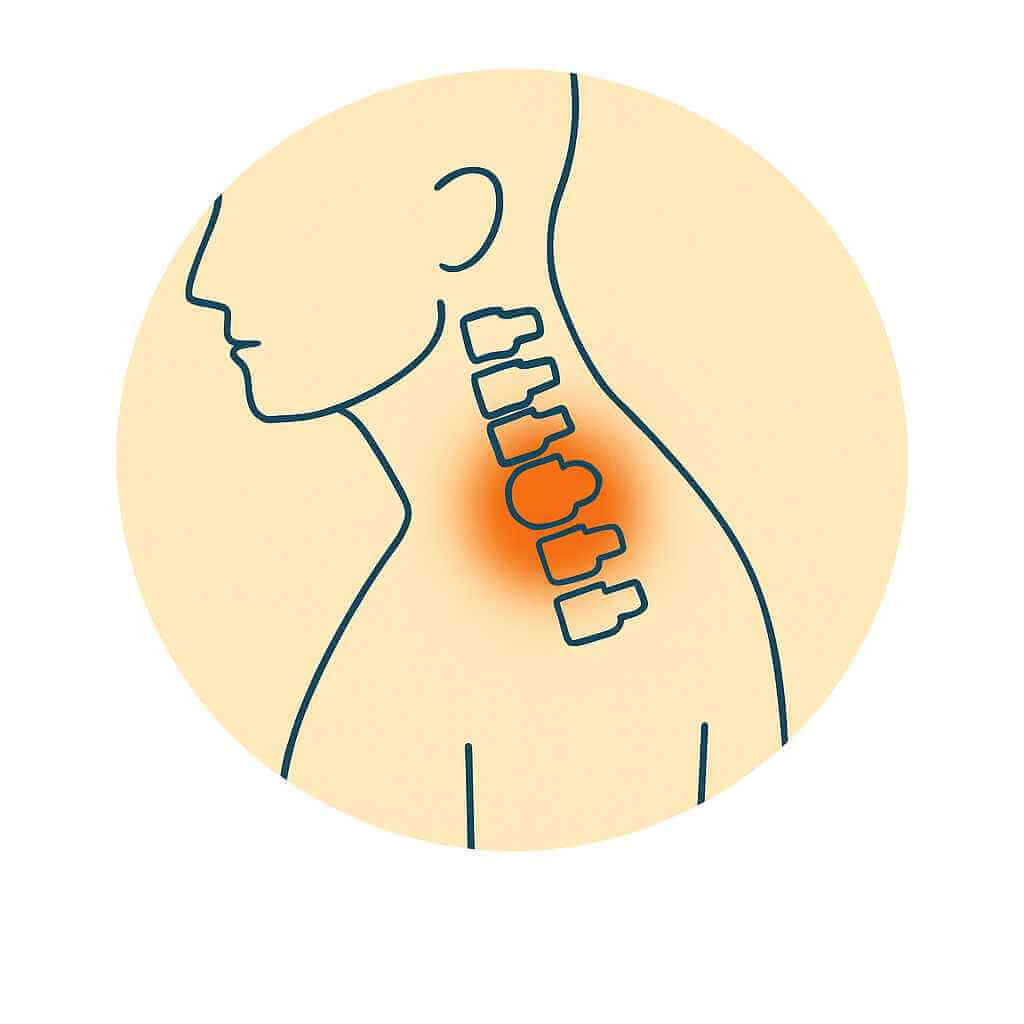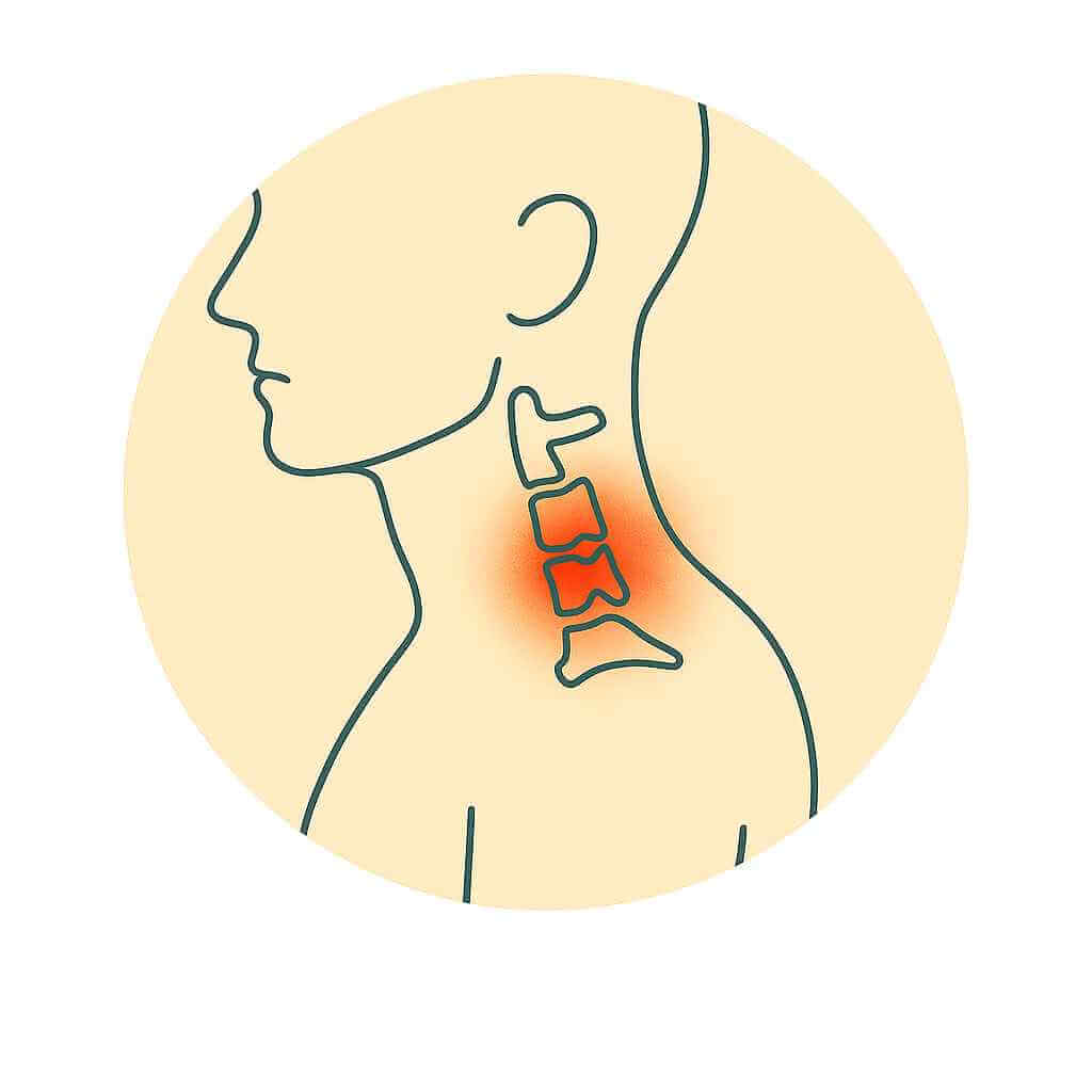 Spondylosis is age-related degeneration of spinal discs and joints, causing neck pain, stiffness, and reduced flexibility.